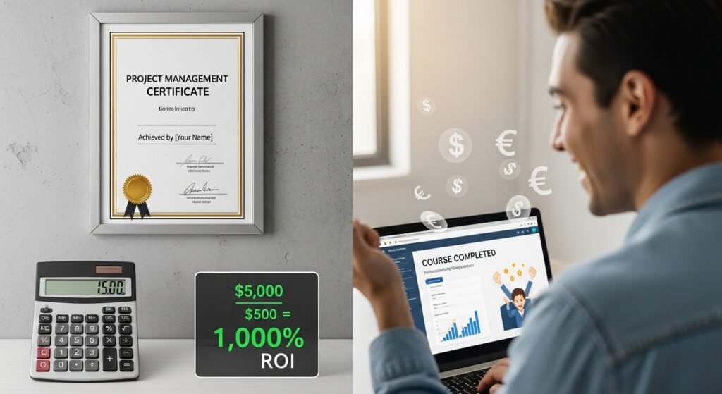Invest $500 to obtain a professional certification or to learn a new skill through a training program. The project management certificate costs $500 but it will result in a $5,000 salary increase which creates a 1,000% return on your educational investment.