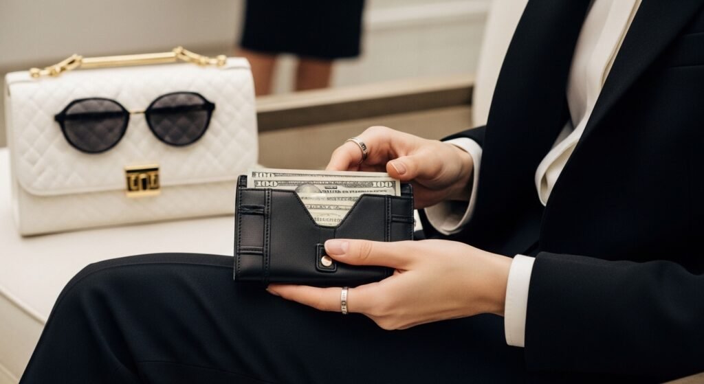 Carrying cash signals that you aren’t dependent on your smartphone. Influencers and CEOs are sporting “digital detox” looks where they carry only a gold money clip, signaling they are too important to be bothered by notifications.
