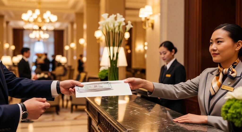Digital tipping is often seen as cold. The elite class has returned to using physical “envelope tipping” method to give tips to hotel staff and valets. People consider the process of handing over a crisp bill in a thick, branded envelope to show gratitude between two people at a higher social status.