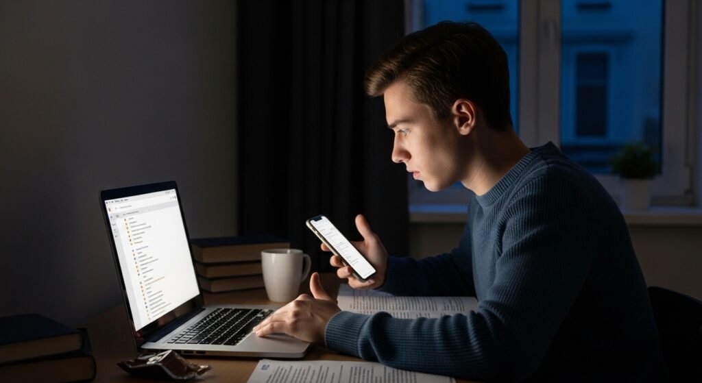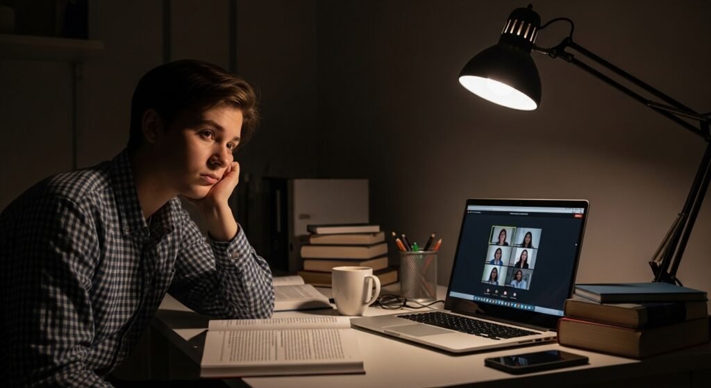 Blue-light screen exposure during extended periods creates a form of fatigue which exhausts your brain more than time spent in a classroom. The lesson continues but your body and brain reach their limits.