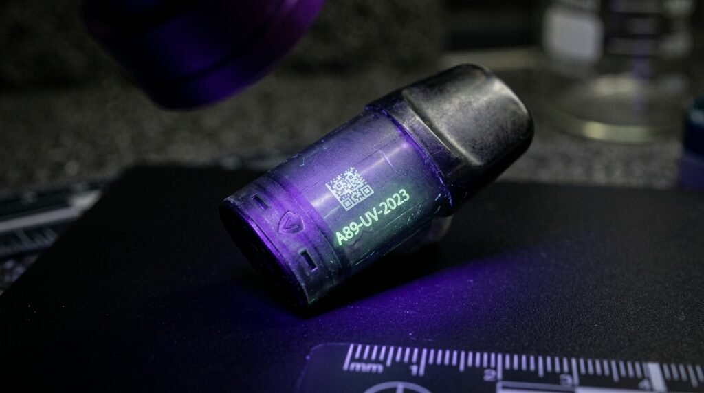 Startups use invisible UV ink to mark pods as a method to catch straw buyers who purchase pods for underage users. Police officers can trace back to the original store and adult who bought the product because the pod contains a scannable code that reveals this information.