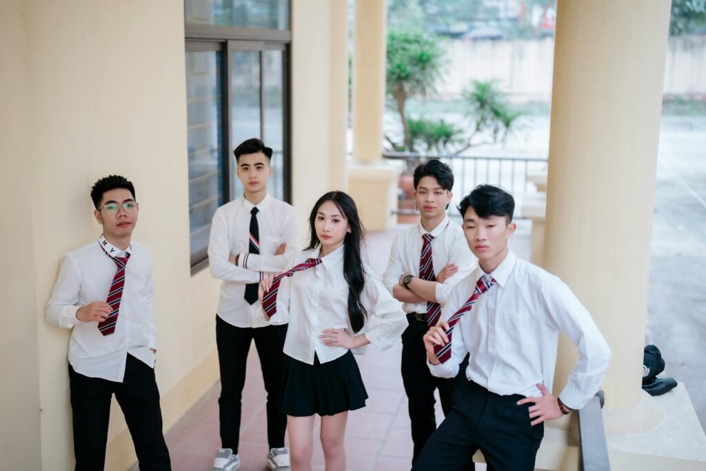 Strict clothing rules showed up in lots of schools. Neat trousers paired with buttoned shirts defined boys’ looks. Dresses or skirts were common for girls, shaping their daily appearance.