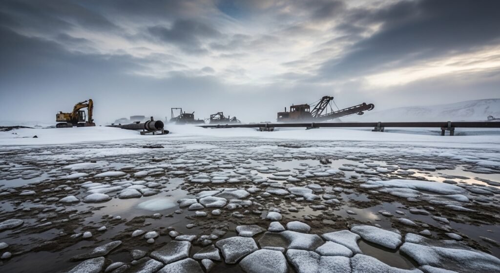The rising climatic temperatures create a situation in which ascending seawaters and moving permafrost now obscure certain gold deposits. The modern techniques required for gold extraction have become unfeasible because of rising extraction costs and safety issues in the field.
