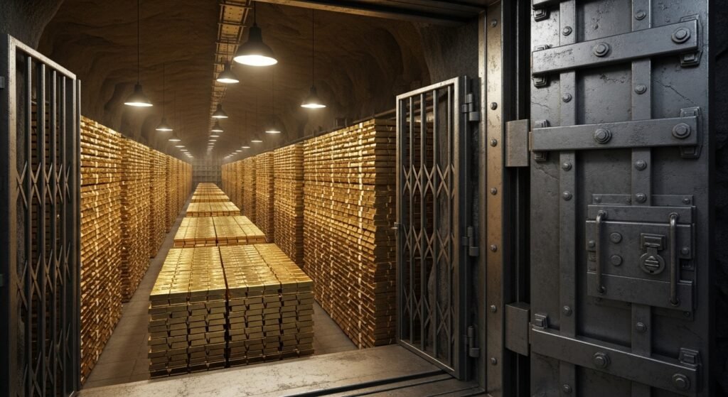 A large share of gold remains inside the planet because it exists in physical form. Central banks and private investors keep gold in underground vaults for a long period, which they treat as inactive resources that will not return to circulation.